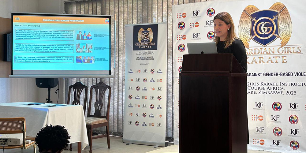 The ceremony was led by World Karate Federation (WKF) President Antonio Espinós and Yokotani Kaoru, Chargés d’Affaires ad interim of the Embassy of Japan to Zimbabwe. They were joined by senior representatives from the international and national sports community, including Joe Rugwete, President of the Zimbabwe National Karate Federation (ZNKF); Souleymane Gaye, President of the African Karate Federation and member of the WKF Executive Committee; WKF CEO Sara Wolff; Thabani Gonye, President of the Zimbabwe Olympic Committee; Nia Lyte, President of the Guardian Girls International (GGI); and Miranda Tabifor, UNFPA Representative.