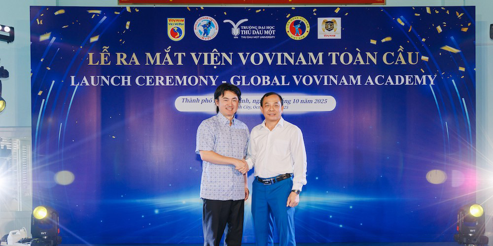 GGI Chairman Shin Koyamada was honored to attend and reconnect with Dr. Mai Huu Tin, President of WVVF; Mr. Chien, WVVF Vice President and President of Vovinam Digital; Mr. Doan Ngoc, President of Thu Dau Mot University; Grand Master Tran Van My, President of the Viet Nam Vovinam Federation; and many other distinguished leaders of the global Vovinam community.